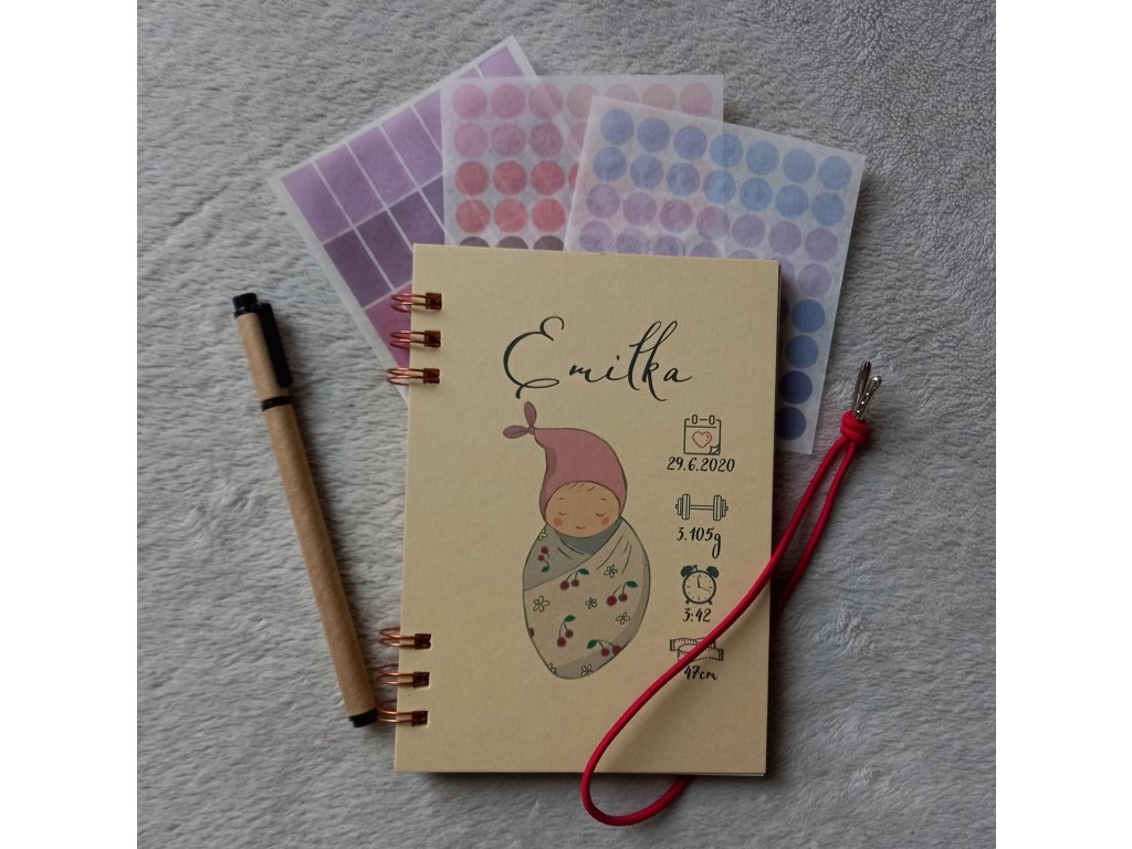 Všechny miminkovské zápisníky mají 100stran vyšší gramáže, takže se pero, ani propiska, či fixa nepropíjí na druhou stranu.